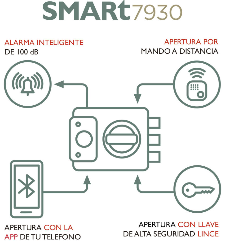Con el cerrojo SMARt7930, es un cerrojo versátil que se adapta a tu estilo, se adapta a ti. Puedes abrir o cerrar la cerradura de forma digital a través de la APP tu teléfono, con mando a distancia, o de manera tradicional con tu llave de alta seguridad LINCE. Es la fusión perfecta entre la innovación digital y seguridad mecánica.